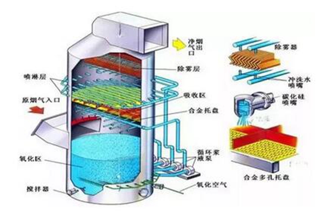 石灰石(石灰)石膏脫硫系統(tǒng)包括煙氣換熱系統(tǒng)、吸收塔脫硫系統(tǒng)、脫硫漿液制備系統(tǒng)、亞硫酸鈣氧化系統(tǒng)、石膏脫水系統(tǒng)等幾部分;該工藝是目前世界上最成熟應(yīng)用最廣泛的技術(shù)。