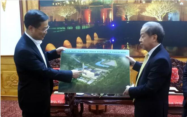 簽約儀式前,王天義總裁與潘玉壽主席就順化項(xiàng)目投資合作進(jìn)行了坦誠(chéng)友好的交流。王天義總裁表示,光大國(guó)際是亞洲最大的垃圾發(fā)電投資運(yùn)營(yíng)商,積累了世界一流的技術(shù)與管理經(jīng)驗(yàn),剛投產(chǎn)運(yùn)營(yíng)的芹苴項(xiàng)目為光大國(guó)際進(jìn)一步開(kāi)拓越南市場(chǎng)提供了寶貴的經(jīng)驗(yàn),我們對(duì)越南投資環(huán)境也充滿(mǎn)信心。我們有信心有能力將順化項(xiàng)目建設(shè)得更快更好,并不斷擴(kuò)大在越南的投資合作,希望雙方加快合同個(gè)別細(xì)節(jié)談判,早日開(kāi)工建設(shè)。潘玉壽主席對(duì)此表示完全贊同,并就順化項(xiàng)目提出兩點(diǎn)希望,一是希望光大國(guó)際將順化項(xiàng)目建成環(huán)境優(yōu)美、品質(zhì)優(yōu)異的垃圾發(fā)電項(xiàng)目,二是希望雙方鼎力配合,加快項(xiàng)目建設(shè)進(jìn)程,盡快實(shí)現(xiàn)投產(chǎn)運(yùn)營(yíng)。簽約儀式后,王天義總裁還向潘玉壽主席展示了順化項(xiàng)目設(shè)計(jì)效果圖。