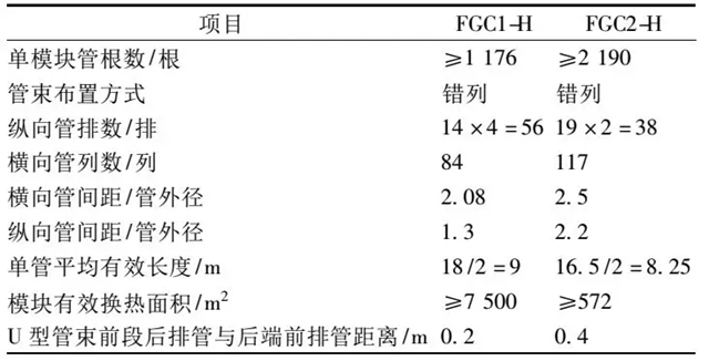 為了便于煙氣冷卻器的安裝,氟塑料換熱器采用模塊化設(shè)計(jì),其結(jié)構(gòu)參數(shù)見表3。