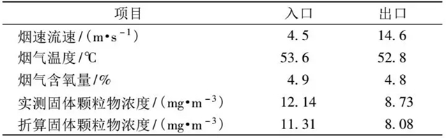 在系統(tǒng)投入的情況下,對(duì)脫硫塔出口的氟塑料換熱器FGC2-H的進(jìn)、出口顆粒物濃度進(jìn)行測量,結(jié)果見表5。FGC2-H入口固體顆粒物濃度為11.31mg/m3,出口為8.08mg/m3,達(dá)到了超低排放(10mg/m3)的標(biāo)準(zhǔn)。據(jù)表中的數(shù)據(jù)計(jì)算,氟塑料換熱器對(duì)固體顆粒物的脫除效率為28.6%。由此可見,系統(tǒng)在能回收煙氣余熱和水分的同時(shí),實(shí)現(xiàn)了顆粒物的協(xié)同脫除。