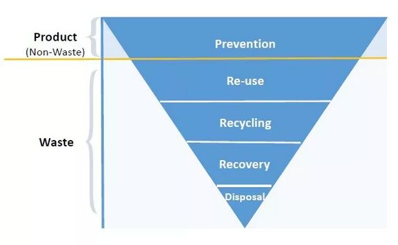 在固廢處理領(lǐng)域,最重要的法規(guī)是1975年頒布的廢棄物框架指令,該指令頒布以來(lái),經(jīng)歷了1991年、2006年、2008年共3次修訂,明確了關(guān)于廢棄物處理的各種概念、定義,是歐盟在固廢處理領(lǐng)域最重要的法律之一。該指令提出了固廢處理金字塔(European Waste Hierarchy)的概念。固廢處理金字塔是歐盟提出的應(yīng)對(duì)廢棄物問(wèn)題的處理原則,規(guī)定了各種方法的優(yōu)先級(jí),體現(xiàn)了歐盟對(duì)于固廢處理的先進(jìn)理念,歐盟各國(guó)也基本是在遵循此原則開(kāi)展廢棄物處理工作。具體如下圖所示: