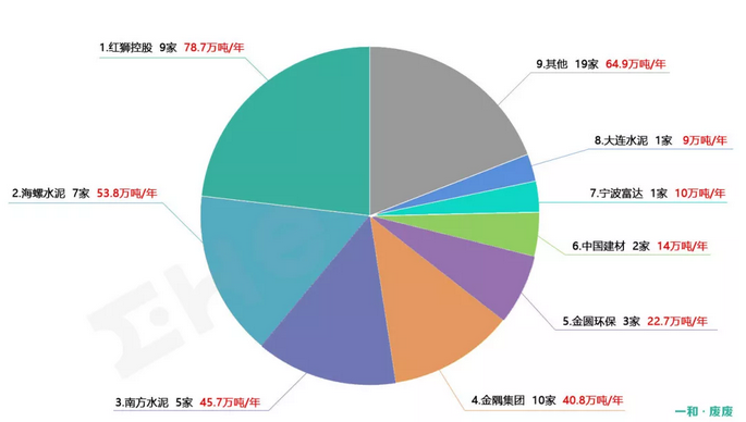 在水泥窯協(xié)同處置危廢上處置能力排名前五的集團(tuán)為紅獅、海螺、南方水泥、金隅和金圓,合計(jì)危廢處置能力占行業(yè)總量的70%。除此之外,華新、中建材、臺泥等也在推進(jìn)水泥窯協(xié)同項(xiàng)目的發(fā)展,并在積極的往危廢處置方向進(jìn)行改造和擴(kuò)張。部分環(huán)保企業(yè)也敏感的注意到水泥窯協(xié)同處置危廢的優(yōu)勢及發(fā)展?jié)摿Γe極布局,占有不小的比重。