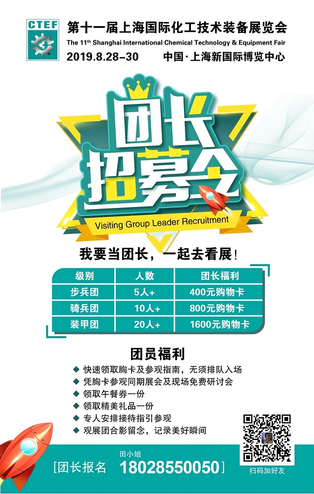 第十一屆上海國際化工技術(shù)裝備展覽會將于2019年8月28-30日在上海新國際博覽中心舉行,展會由中國化工裝備協(xié)會、中國化工企業(yè)管理協(xié)會、中國化工機械動力技術(shù)協(xié)會、廣東省石油和化學(xué)工業(yè)協(xié)會、廣東省化工學(xué)會以及振威展覽股份聯(lián)合主辦。