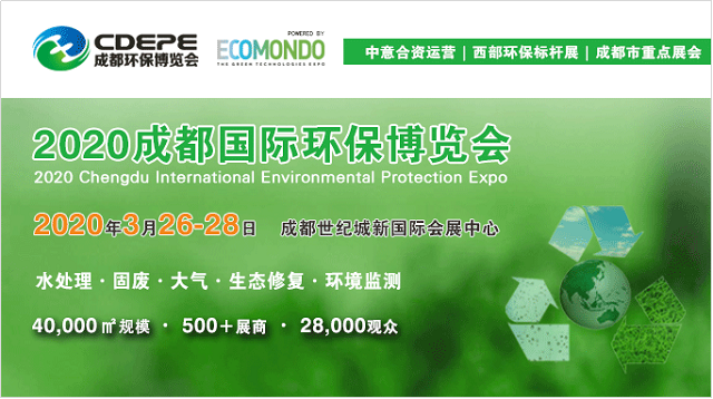 CDEPE2020成都國際環(huán)保博覽會將于2020年3月26-28日在成都世紀城新國際會展中心舉辦。本屆展會預(yù)計展出面積達40,000平方米,參展商超過500家,預(yù)計將吸引28,000名專業(yè)觀眾共襄盛舉。