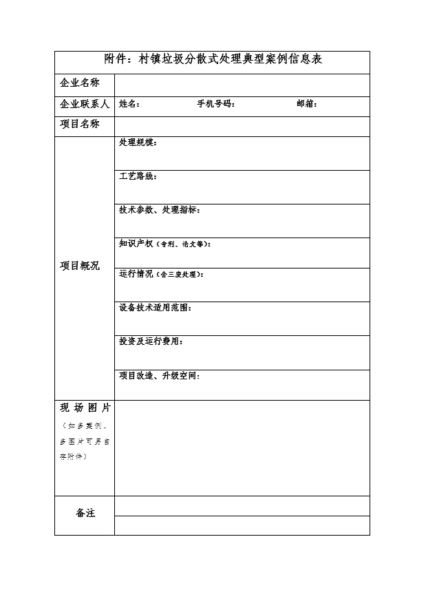附件:村鎮(zhèn)垃圾分散式處理典型案例信息表
