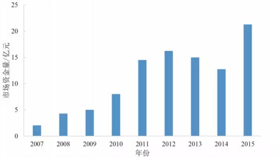 根據(jù)江蘇(宜興)環(huán)保產(chǎn)業(yè)技術(shù)研究院 - 土盟數(shù)據(jù)庫和《2015 中國土壤修復(fù)發(fā)展白皮書》的不完全統(tǒng)計,從 2007 年到 2015 年全國土壤修復(fù)合同簽約額從 2.05 億元上升到 21.28億元,資金累計總量約為 99 億元,如圖 5-24 所示,市場總體發(fā)展穩(wěn)定?!笆濉逼陂g市場發(fā)展較為迅速,呈“V”字形上升,期間土壤修復(fù)資金累積量約為 80 億元。