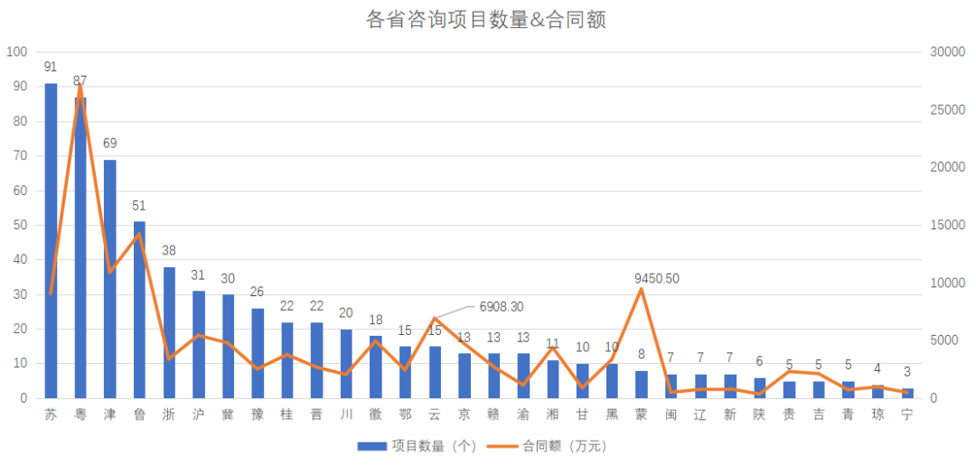 (1)生態(tài)環(huán)境部門,主導(dǎo)了大量的咨詢項(xiàng)目(2019年占比42.45%),在處于摸清底數(shù)的行業(yè)初期,這一趨勢(shì)還會(huì)延續(xù)下去。
