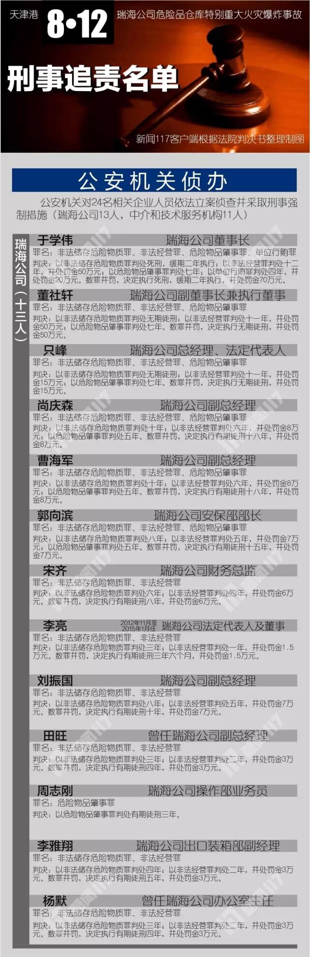 天津港爆炸案宣判:49名責(zé)任人獲刑 海瑞董事長被判死緩