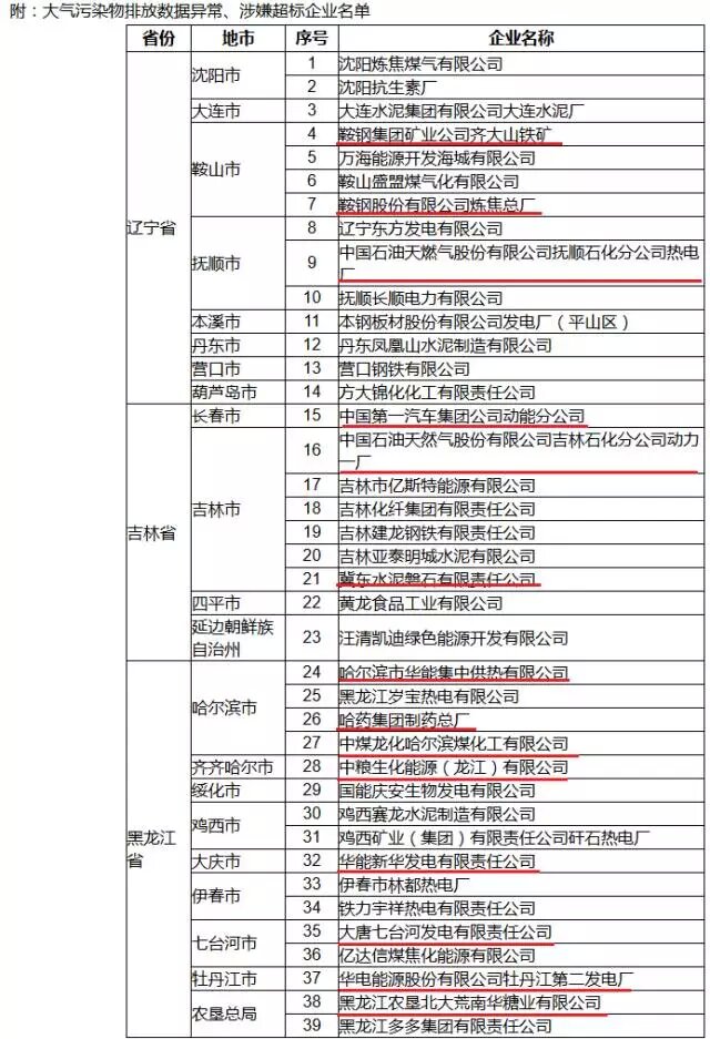 ▲10月,東北地區(qū)大氣污染物涉嫌超標(biāo)排放的39家企業(yè)名單