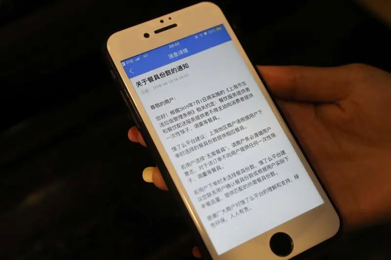 餐廳提供的可重復(fù)使用餐具,以及送餐平臺(tái)向所有在線商戶發(fā)送的控制一次性餐具通知 賴鑫琳 攝