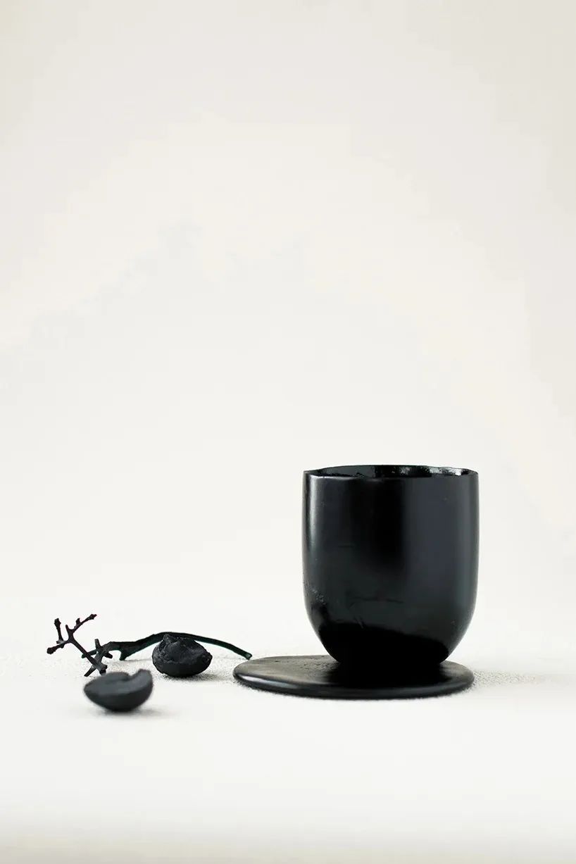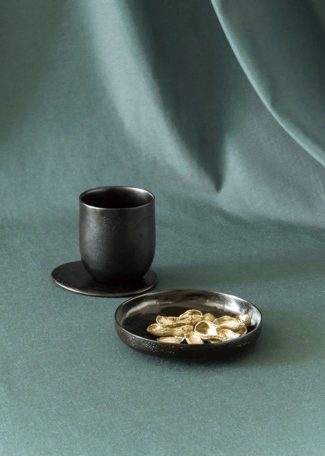 器皿的黑色本體,來自食物碳化后的本真色彩,這背后也別有一番深意。Araki篤信萬物有靈,把食物碳化的過程,仿佛是為那些被拋棄的生命舉行一場莊嚴儀式。垃圾焚化后,轉世成為美麗的造物,也是這個系列名字“Anima”(靈魂)的來源。