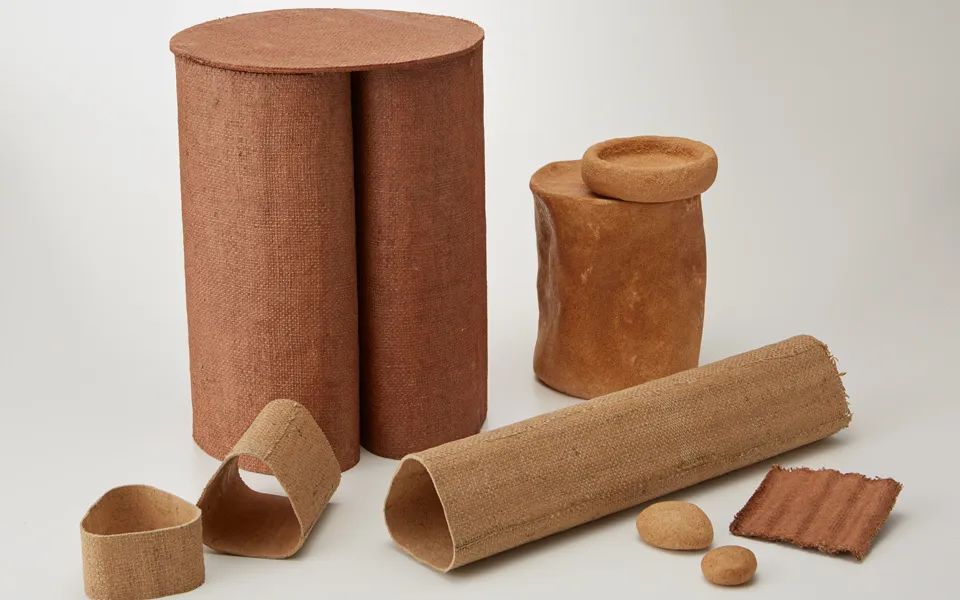 那要用什么替代塑料呢?他們發(fā)現(xiàn)了制作和菓子的主料,瓊脂,就是一個很適合的替代品。瓊脂的質地透明多變,薄厚軟硬可以輕松調節(jié),還能夠自然降解,是一個可塑性強、潛力無限的材質。瓊脂做的包裹填充物,比泡泡紙更輕盈也更有彈性,它成功保護著Araki的快遞從日本安全抵達意大利,此等優(yōu)越發(fā)明讓Araki獲得了2016年Lexus全球設計大獎。此外,Araki還試著用天然的松樹脂和植物蠟,代替常見的亞克力材料。他設計的植脂花瓶,柔韌且防水,又比塑料更多了一份氤氳。植物材料天生有記憶屬性,在不同的溫度控制下,很容易用手工塑形,讓這些花器有了流水線產(chǎn)品缺少的溫度。而作為大米消費大國,日本每年都有成噸的大米囤積發(fā)霉變質。Araki借鑒日本歷史上,用大米制成膠水穩(wěn)固房屋的案例,他用大米膠水粘合木屑和黃麻,制成強韌的圓柱體。