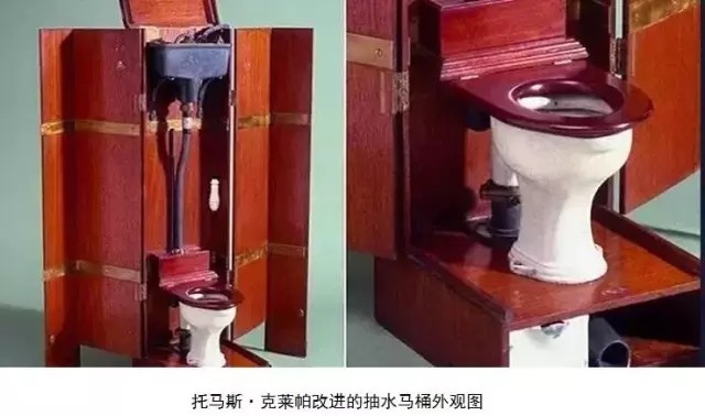 到了1861年,管道工托馬斯·克萊帕改進(jìn)了抽水馬桶(如下圖),并發(fā)明了一套先進(jìn)的節(jié)水沖洗系統(tǒng)。自此,人體廢物排放才開始進(jìn)入現(xiàn)代化時(shí)期。
