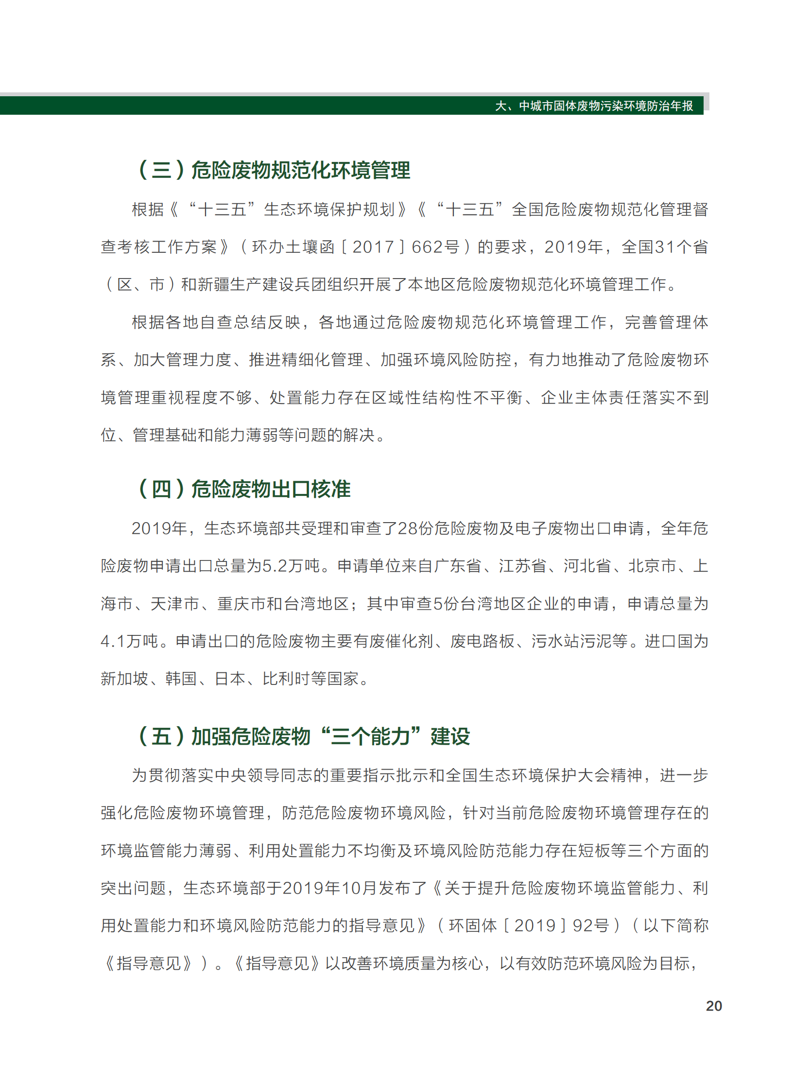 《2020年全國大、中城市固體廢物污染環(huán)境防治年報》發(fā)布,年報表示,黨中央、國務院高度重視固體廢物污染環(huán)境防治工作。