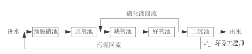 A2/O這是一個很成熟的脫氮除磷工藝,后續(xù)介紹的其他脫氮處理工藝基本上是為克服A2/O工藝的缺點而進行改動的,從而在節(jié)能的基礎(chǔ)之上滿足出水要求。