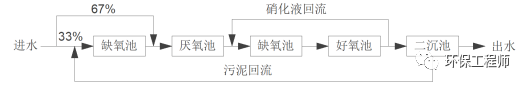 圖13 3段改良Bardenpho工藝(或A2/O工藝)