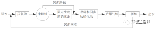 其實該工藝還有一定的缺陷,比如:①厭氧池中無法完全吸附有機物,導致固定膜反應(yīng)器進水中攜帶有BOD,一方面抑制硝化反應(yīng),另一方面造成有機物的浪費和能耗的增高;②在進水氨氮偏高時,缺氧池中反硝化除磷菌不能徹底的去除硝氮,導致出水TN的升高。