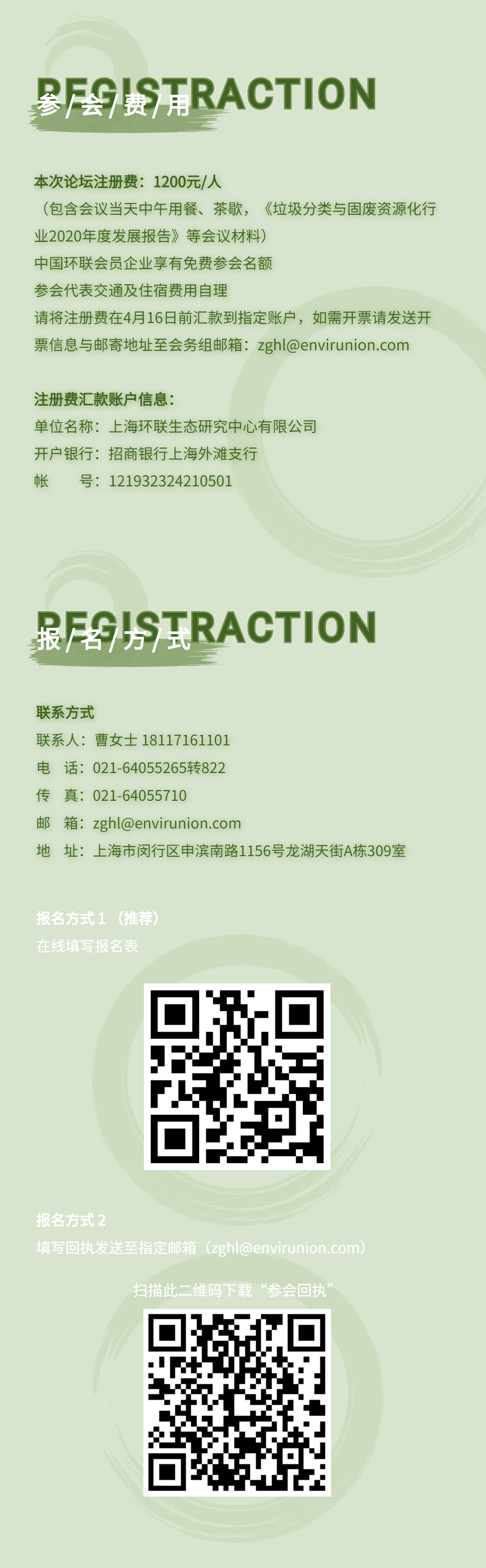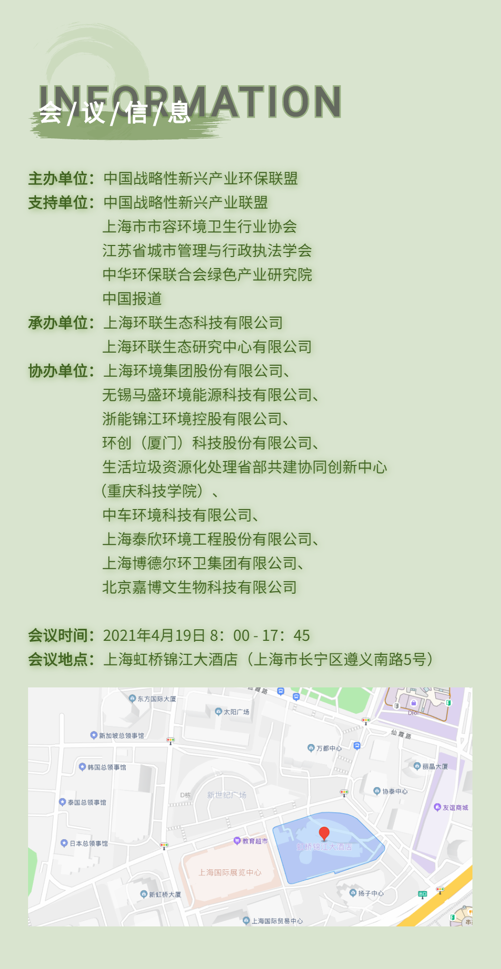 中國環(huán)聯(lián)將于2021年4月19日在上海舉辦第八屆固廢資源化高峰論壇,論壇主題“垃圾資源化,助力碳中和”。將邀請生活垃圾分類、廚余垃圾處理、垃圾焚燒發(fā)電、智慧環(huán)衛(wèi)管理、低碳技術(shù)應用等領(lǐng)域卓越企業(yè)代表,高等院校資深專家及政府官員參加,解讀最新政策趨勢、分析市場特點及行業(yè)技術(shù)焦點、分享創(chuàng)新業(yè)務模式與經(jīng)營理念,為固廢資源化貢獻力量。期待您的參與,因為有您,論壇更加精彩!