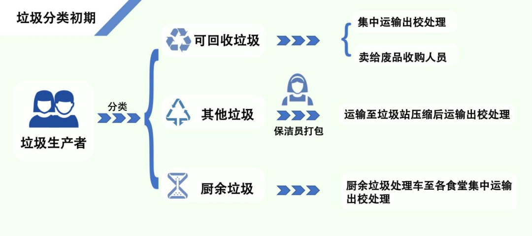 南大仙林校區(qū)每日約產生7噸,分類出現(xiàn)的主要問題集中在清運環(huán)節(jié),較長的清理周期和源頭分類意識的喪失系統(tǒng)性地導致了垃圾的堆積與外溢。5個月過去,校園垃圾分類仍處于“陣痛期”。
