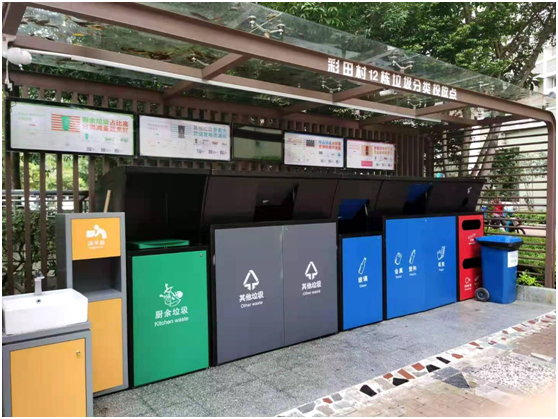 3、投放點(diǎn)一般由投放間、管理間和貯存間組成(可分可合),投放間面積不宜小于15㎡,管理間面積不宜小于10㎡,貯存間面積根據(jù)需要設(shè)置。受條件限制的小區(qū)至少應(yīng)有一個(gè)投放點(diǎn)設(shè)置管理間和貯存間。4、投放點(diǎn)應(yīng)設(shè)置洗水池、地面排水溝,并在醒目位置張貼投放時(shí)間、分類要求和宣傳圖文等。5、每個(gè)小區(qū)至少應(yīng)有一個(gè)投放點(diǎn)設(shè)置可回收物和有害垃圾的收集容器,兩網(wǎng)融合回收服務(wù)站可替代可回收物收集容器。五、投放點(diǎn)管理
