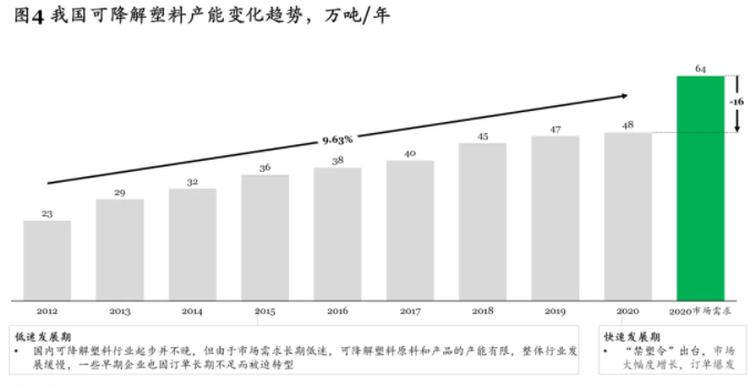 “白色污染是伴隨人類社會、經(jīng)濟(jì)發(fā)展過程中面臨的一個(gè)巨大挑戰(zhàn),21世紀(jì)以來,全球興起可降解風(fēng)潮,多個(gè)國家發(fā)布趨嚴(yán)政策推動行業(yè)發(fā)展。2020年1月,我國也正式從“限塑”轉(zhuǎn)為“禁塑”,繼而帶動可降解塑料行業(yè)從早期的低迷發(fā)展期進(jìn)入高速發(fā)展期。由于經(jīng)歷了長期的低迷發(fā)展,當(dāng)前行業(yè)競爭較為混亂且尚未定局,把握住核心要素便有可能成為龍頭企業(yè),領(lǐng)航黃金時(shí)代。