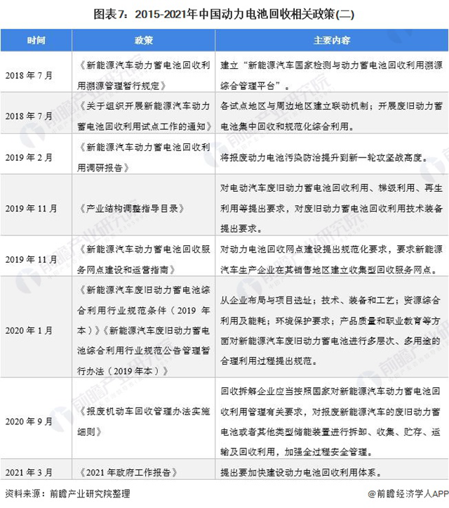 首先,前瞻認(rèn)為這些企業(yè)布局的其中一大原因是動力電池回收環(huán)保且再生利用價值大。動力電池通常有3-5年度使用壽命的,如果退役的動力電池時不能得到妥善處理,將會帶來觸電、燃爆、腐蝕等安全隱患,對生態(tài)環(huán)境和人身健康存在較大威脅。