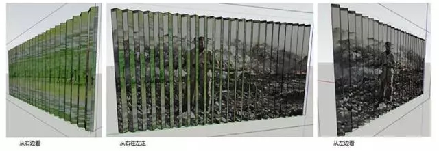這堵參觀墻暗藏玄機(jī),從左右兩側(cè)不同角度看會看到完全不同的兩幅畫面,從右邊看看到的是綠色的充滿生氣的地球風(fēng)景,而一路從右往左走去,從左側(cè)看到的則是工人在垃圾堆里工作的情形,從垃圾堆積前后的環(huán)境對比,直觀而震撼地向觀眾展現(xiàn)了隨意丟棄生活垃圾對土壤、空氣、水資源、人類健康造成的危害。