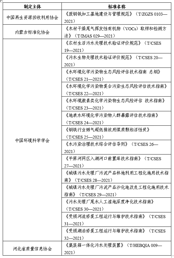 表:7月生態(tài)保護和環(huán)境治理類團體標(biāo)準(zhǔn)名錄