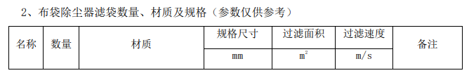 注:乙方應到現場仔細核實濾袋及籠骨的具體規(guī)格尺寸。