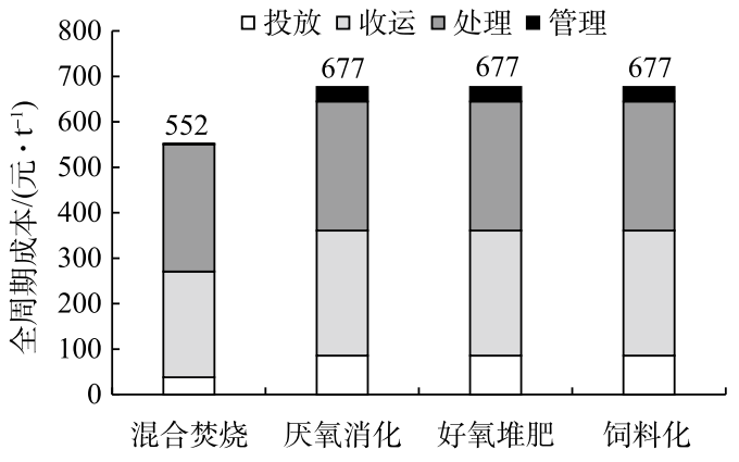 1. 廚余垃圾飼料化具有最高的回收利用率和顯著的碳減排效應(yīng);厭氧消化回收利用率較高,碳減排效應(yīng)最大;好氧堆肥的回收利用率與厭氧消化相當(dāng),但溫室氣體泄露會(huì)導(dǎo)致較高的碳排放;混合焚燒可以避免溫室氣體泄漏,但余熱發(fā)電的回收利用率較低,基本無(wú)碳減排效應(yīng)。