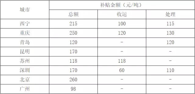 2)收運環(huán)節(jié):主要由地方財政和地方環(huán)衛(wèi)部門進行管理,向作業(yè)公司進行一定補貼;