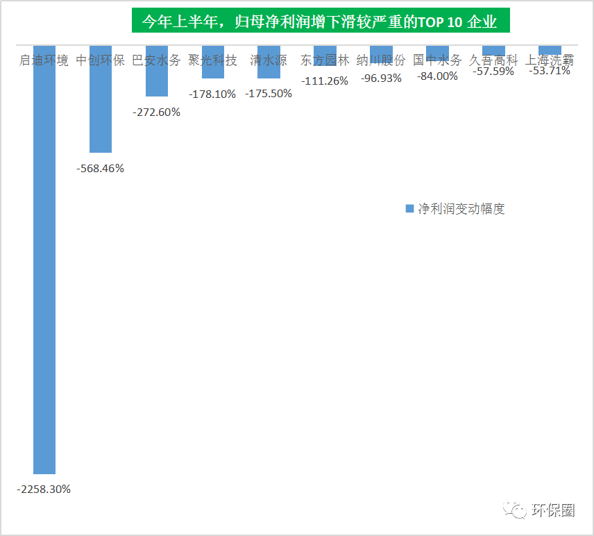 看完上半年?duì)I收增長(zhǎng)情況,我們重點(diǎn)分析一下凈利潤(rùn)。先說結(jié)論,今年上半年,111家環(huán)保上市企業(yè)中,歸屬于上市公司股東的凈利潤(rùn)好于預(yù)期,遠(yuǎn)高于去年中報(bào)和年報(bào)。具體來看,111家上市環(huán)企,歸母凈利潤(rùn)實(shí)現(xiàn)增長(zhǎng)有83家,約占75%。也就是說,今年上半年度,只有25%企業(yè),約29家企業(yè)表現(xiàn)“不盡如意”,歸母凈利潤(rùn)出現(xiàn)下滑/虧損情況,較去年中報(bào)的“近半數(shù)下滑”,減少了約25%。也有人說,今年中報(bào)不能與去年相比,是因?yàn)槿ツ晔艿揭咔橛绊懀厥鈺r(shí)期不作數(shù)。不過,今年中報(bào)的數(shù)據(jù),與去年年報(bào)的40%下滑率相比,同樣也減少了15%,再次說明了后疫情時(shí)代,除了個(gè)別企業(yè)環(huán)保股因?yàn)閭€(gè)別原因未能重振往日雄風(fēng)(如圖八所示),絕大多數(shù)企業(yè)則已經(jīng)通過出售股權(quán)、賣項(xiàng)目、傍身央企和國資,實(shí)現(xiàn)了逆風(fēng)翻盤。圖八:今年上半年,歸母凈利潤(rùn)實(shí)現(xiàn)負(fù)增長(zhǎng)/虧損的29家上市環(huán)企▼