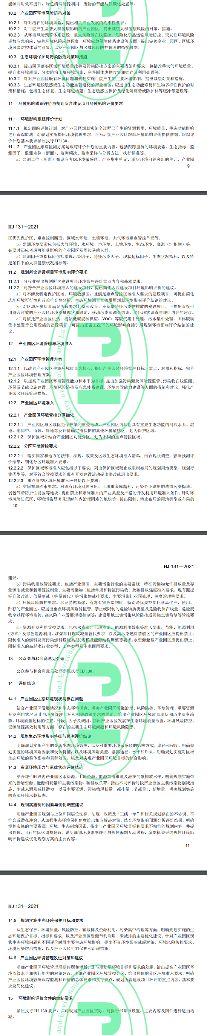 《規(guī)劃環(huán)境影響評價技術(shù)導(dǎo)則 產(chǎn)業(yè)園區(qū)》(HJ 131-2021)