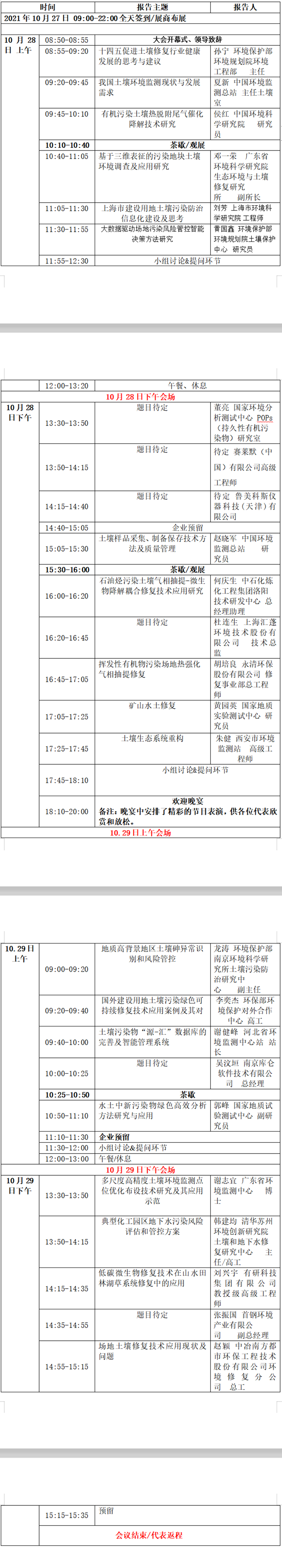 會議議程:第五屆中國土壤與地下水高峰論壇2021.10.28-29 杭州