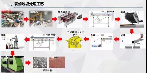 基于對(duì)拆除垃圾和裝修垃圾的特性和比重的分析,上海環(huán)境院對(duì)兩類垃圾相應(yīng)處理工藝的選擇,進(jìn)行了系統(tǒng)的設(shè)置,以達(dá)到拆除垃圾和裝修垃圾無(wú)害化和資源化的利用。