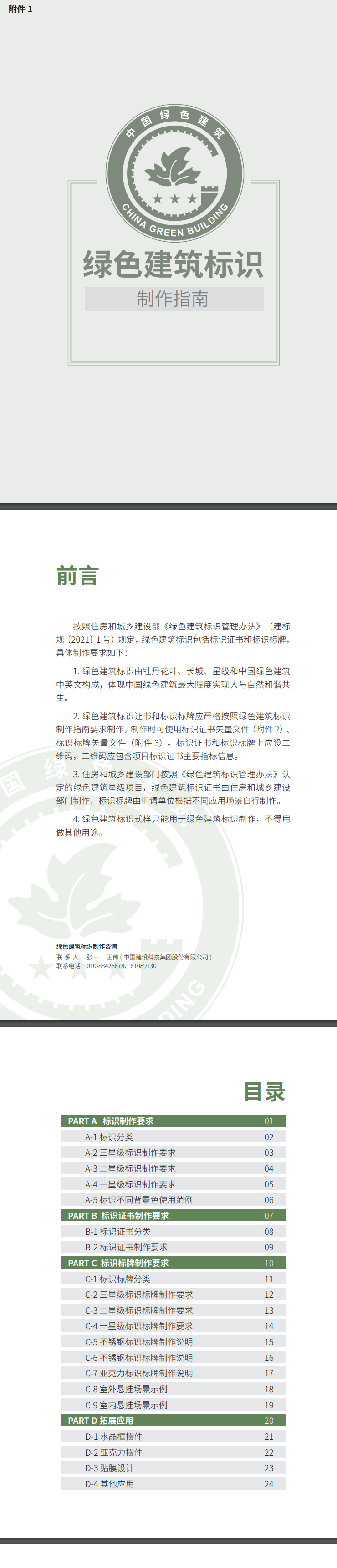 按照《綠色建筑標(biāo)識(shí)管理辦法》(建標(biāo)規(guī)〔2021〕1號(hào))要求,我部進(jìn)一步完善了綠色建筑標(biāo)識(shí)證書(shū)式樣,增加了標(biāo)牌式樣,現(xiàn)予以發(fā)布。有關(guān)事項(xiàng)通知如下: