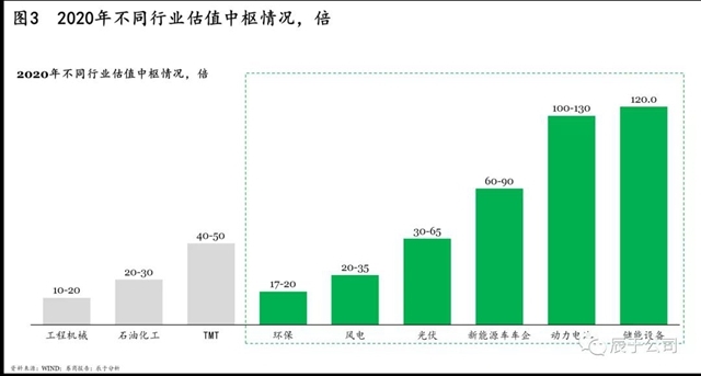 不難發(fā)現(xiàn),不同行業(yè)的估值中樞相差很大,例如能源類與生態(tài)環(huán)保類之間就相差2-6倍(圖3),因此,具有多類業(yè)務或有轉型意向的生態(tài)環(huán)保企業(yè)可在行業(yè)定性上多加考慮。