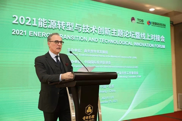 2021年11月25日下午,由商務(wù)部外貿(mào)發(fā)展局主辦、中國國際投資促進(jìn)會承辦、中國國際投資促進(jìn)會能源產(chǎn)業(yè)合作工作委員會協(xié)辦的“2021年能源轉(zhuǎn)型與技術(shù)創(chuàng)新主題論壇暨線上對接會”成功舉辦。本次論壇以“能源轉(zhuǎn)型與技術(shù)創(chuàng)新”為主題,聚焦“雙碳目標(biāo)”背景下的能源轉(zhuǎn)型與技術(shù)創(chuàng)新,宣傳推廣自主品牌企業(yè),促進(jìn)中外企業(yè)在清潔能源開發(fā)利用、傳統(tǒng)能源節(jié)能減排等領(lǐng)域開展深入交流與合作。