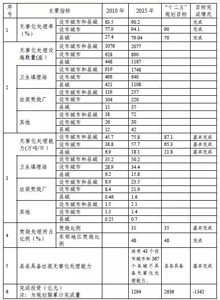 ——到 2020 年底,具備條件的直轄市、計劃單列市和省會城市(建成區(qū))實現(xiàn)原生垃圾“零填埋”,建制鎮(zhèn)實現(xiàn)生活垃圾無害化處理能力全覆蓋。