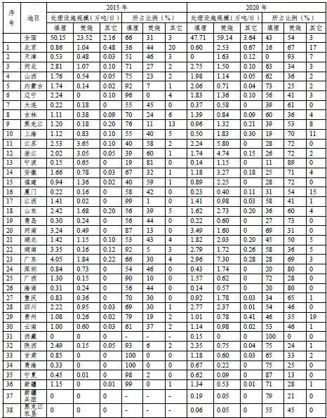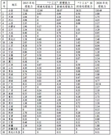 附表2 “十三五”全國城鎮(zhèn)生活垃圾處理設施規(guī)模單位:萬噸/日