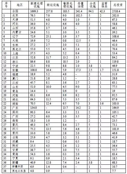 全國城鎮(zhèn)生活垃圾無害化處理設施建設總投資約2518.4億元,比征求意見稿增長三成。