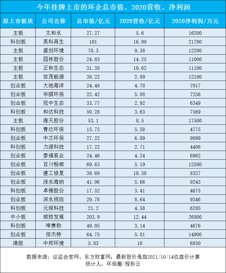 此外,環(huán)保企業(yè)紛紛上市還跟當(dāng)前較為寬松的IPO審核環(huán)境有關(guān),也就是筆者多次提到的“注冊制改革”,不僅簡化了上市流程,而且對公司營收、凈利潤等硬性財務(wù)指標(biāo)要求放寬不少,準(zhǔn)入門檻大大降低。