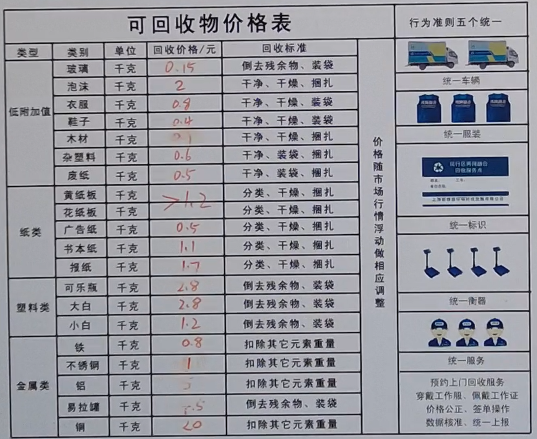 上海某區(qū)可回收物的市場(chǎng)價(jià)格