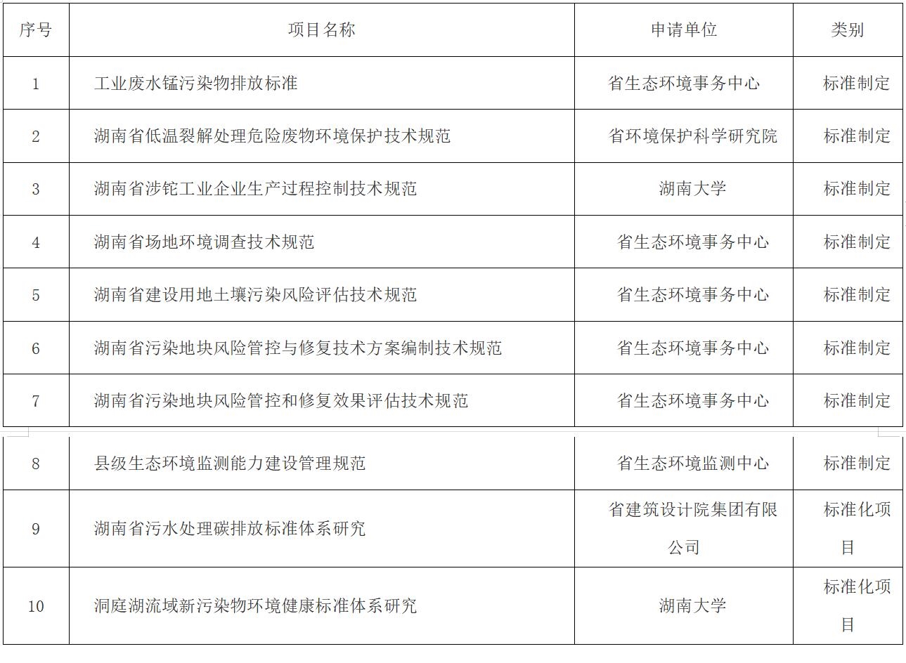 湖南省生態(tài)環(huán)境廳關于2022年度湖南省地方生態(tài)環(huán)境標準項目評審結果的公示