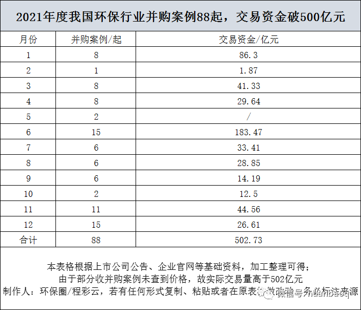 最徹底的一次洗牌!2021環(huán)保并購超500億創(chuàng)歷年之最