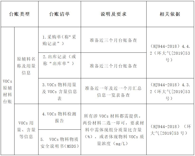 企業(yè)的VOCs管控臺(tái)賬清單可參考下面表格: