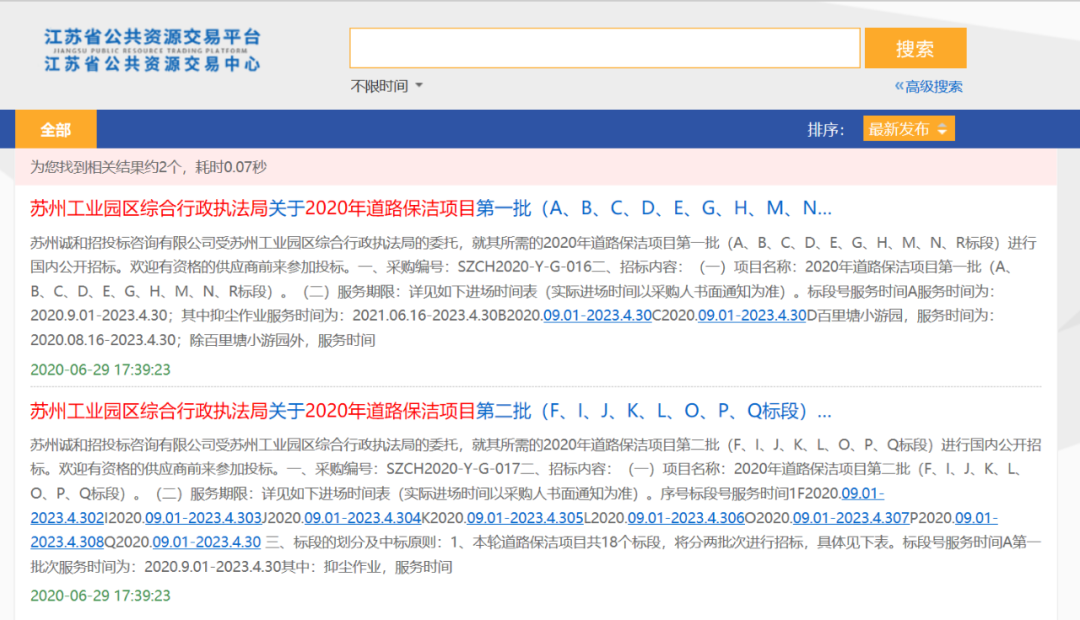 環(huán)衛(wèi)市場項目的“碎片化”現(xiàn)象,即“在環(huán)衛(wèi)市場已經(jīng)走過環(huán)衛(wèi)+、環(huán)衛(wèi)一體化并已經(jīng)到了城市服務(wù)階段的時候,這種分標(biāo)段的做法似乎與市場趨勢有些格格不入”。筆者認(rèn)為,此觀點甚好! 為什么我們現(xiàn)在看到“碎片化”三個字就會感到格格不入?因為大家早已被環(huán)衛(wèi)一體化,城市大管家等“綜合性打包”項目所展現(xiàn)出的“高品質(zhì)服務(wù)質(zhì)量”,“高效率運營體驗”、“低成本作業(yè)收益”等種種好處折服了。所以,當(dāng)一個好好的項目被“粉碎”之后,我們才會唏噓不已!既然大部分人都承認(rèn)“一體化”好,也認(rèn)同城市大管家等模式是未來的發(fā)展趨勢,為什么這些項目還會年復(fù)一年地被割裂?我想,歷史因素、財政緊缺、技術(shù)不足等因素都是原因之一。冰凍三尺非一日之寒,想要“破鏡重圓”,需要政府、社會、企業(yè)各方面的通力合作,才能改變這一不合理的現(xiàn)象。在老環(huán)衛(wèi)人眼中,環(huán)衛(wèi)項目“碎片化”其實早已是老生常談,毫無新意。但是作為圈內(nèi)人,我們需要警惕的是這種現(xiàn)象的頻發(fā)地不是什么經(jīng)濟(jì)欠發(fā)達(dá)地區(qū),而是北上廣、杭州、鄭州等一線、新一線城市城市。例如,2021年3月4日,北京市朝陽區(qū)發(fā)布2021年大黃莊綠化隊園林綠化養(yǎng)護(hù)及保潔服務(wù)項目(服務(wù)期約為1年左右)中標(biāo)公告,總金額約為4524.8萬元的項目竟然被分割成39個子包!▼公告部分截圖。來源:北京市政府采購網(wǎng)39個子包中,中標(biāo)金額最高的約為178萬元,最低的僅為73.2萬元,平均中標(biāo)價格約為116萬元。中標(biāo)人中,僅1家外地公司,地方保護(hù)主義味道頗為濃厚(下列多個案例均證明了這一點)。這種將環(huán)衛(wèi)項目“稀碎”的行為在北京似乎早已成了一項傳統(tǒng)。在上述項目發(fā)布前不久,北京還發(fā)布了2021年大望京公園綠化養(yǎng)護(hù)及保潔服務(wù)項目,總中標(biāo)金額約為1773.73 萬元,被10家本地企業(yè)瓜分。中標(biāo)金額最高的子包約為350萬元,最低為90.1萬元,相差2.8倍。無獨有偶,除了北京,環(huán)衛(wèi)項目“碎片化”在其他地區(qū)也很常見。2020年6月,蘇州市工業(yè)園區(qū)發(fā)布2020年道路保潔項目,分為兩批共18個標(biāo)段,服務(wù)期約為2年8個月,項目預(yù)算金額約為4.9億元。而根據(jù)該區(qū)域2018年的采購記錄,14家企業(yè)瓜分了20個標(biāo)段。2020年12月,蘇州市姑蘇區(qū)發(fā)布約2.25億元2020年環(huán)衛(wèi)招標(biāo)項目信息公告。項目服務(wù)期1年,分3大項目共16個標(biāo)段,預(yù)算金額最高的子包為3056.35萬元,最低的為683.1萬元,兩者相差近4.5倍。2021年2月,2.64億元鎮(zhèn)江市京口、潤州區(qū)城市道路街巷環(huán)衛(wèi)保潔市場化作業(yè)項目開標(biāo),分為9個標(biāo)段,中標(biāo)人全部為江蘇本地企業(yè)。2021年4月,1.62億元的成都市雙流區(qū)城市管理局直管區(qū)域(內(nèi)線)環(huán)衛(wèi)作業(yè)采購項目發(fā)布中標(biāo)公告,被分割為16個標(biāo)段。除長沙中聯(lián)重科環(huán)境產(chǎn)業(yè)有限公司等2家外地企業(yè),其余全部為四川本地公司。2021年4月,株洲市蘆淞區(qū)環(huán)衛(wèi)服務(wù)項目開標(biāo),中標(biāo)金額約1.35億元,分為9個標(biāo)段,其中有4家本地企業(yè)中標(biāo)。2021年8月,近1.9億元西安市雁塔區(qū)城市道路市場化清掃保潔項目開標(biāo),分為8個標(biāo)段。本地企業(yè)占了6個。不僅是環(huán)衛(wèi)項目,就連環(huán)衛(wèi)裝備項目也逃不開被碎成“渣渣”的命運。2021年5月14日,河北省發(fā)布唐山市豐南區(qū)環(huán)衛(wèi)生產(chǎn)用車采購項目招標(biāo)公告,預(yù)算金額才1835萬元,卻被分為10個子包,每個子包平均預(yù)算價格不足200萬元。此外,當(dāng)垃圾分類項目興起之后,由于其獨特的需求和服務(wù)模式,“碎片化”更是找到了生長的“土壤”。2021年5月,鄭州市發(fā)布惠濟(jì)區(qū)2021年生活垃圾分類項目,預(yù)算5千萬出頭,卻被分為了15個包(服務(wù)內(nèi)容:垃圾分類服務(wù)及廚余、大件和低值可回收垃圾專業(yè)收運)。同年6月,鄭州市又發(fā)布二七區(qū)2021生活垃圾分類項目中標(biāo)公告,總中標(biāo)金額6千多萬的項目被分為15個標(biāo)段,除中國天楹股份有限公司等2家企業(yè)外,其余均為河南本地企業(yè)。最近的一次,據(jù)環(huán)衛(wèi)科技網(wǎng)報道,2021年9月,北京朝陽區(qū)7天內(nèi)發(fā)布各區(qū)域/街道垃圾分類項目共計21個。此次“碎片化招標(biāo)”預(yù)算金額共計8463萬元,最高和最低相差5.4倍。綜上所述,環(huán)衛(wèi)市場“碎片化”的問題已經(jīng)成為了整個行業(yè)的一個頑疾,嚴(yán)重制約著環(huán)衛(wèi)行業(yè)市場化的進(jìn)程。