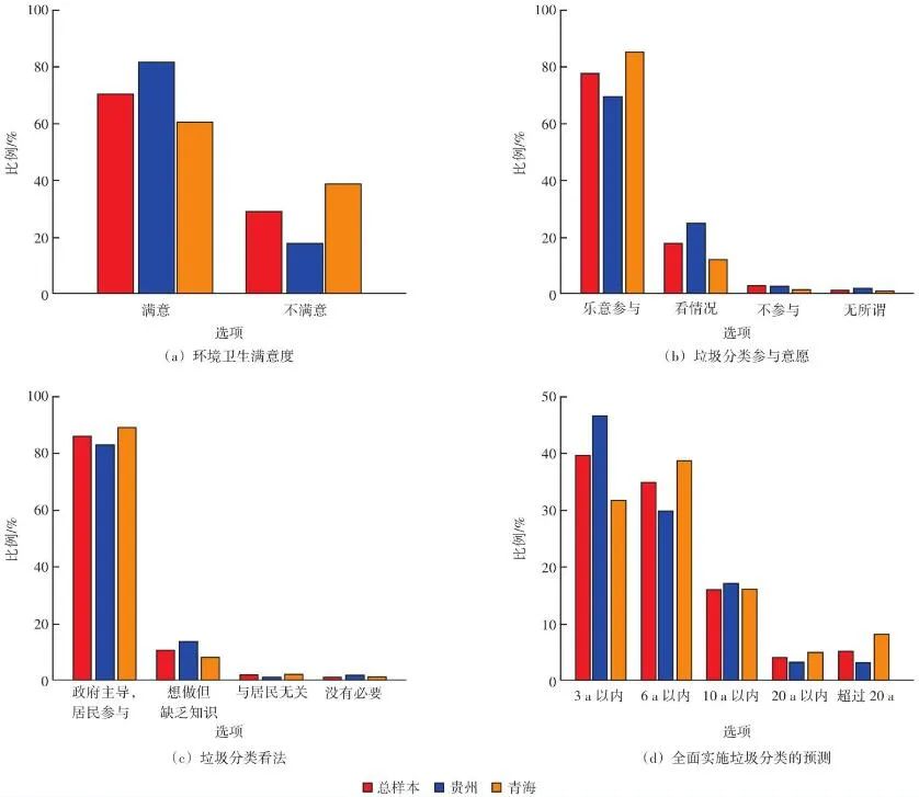 基于青海和貴州兩地的調(diào)查數(shù)據(jù)(共302份有效問(wèn)卷),分析西部地區(qū)居民垃圾分類(lèi)意愿及影響因素,發(fā)現(xiàn)環(huán)境衛(wèi)生滿(mǎn)意度為72%。78%的受訪(fǎng)者愿意參與分類(lèi),86%的受訪(fǎng)者支持“政府主導(dǎo),居民參與”,強(qiáng)制分類(lèi)(72%)、濕垃圾破袋投放(68%)和定時(shí)定點(diǎn)投放(61%)3項(xiàng)措施的接受程度較高。分類(lèi)不方便、設(shè)施不完善、宣傳力度不足、缺乏社會(huì)氛圍是阻礙居民垃圾分類(lèi)的主要因素。建議構(gòu)建政府主導(dǎo)、多方參與的垃圾治理機(jī)制,提高垃圾桶配置率和覆蓋率,提高垃圾分類(lèi)投放的便利性,采取針對(duì)性的宣傳策略,營(yíng)造全民參與垃圾分類(lèi)的社會(huì)氛圍。在采取多樣化的管理措施組合方式下,青海、貴州兩地分別側(cè)重加強(qiáng)強(qiáng)制型管理和引導(dǎo)型管理。
