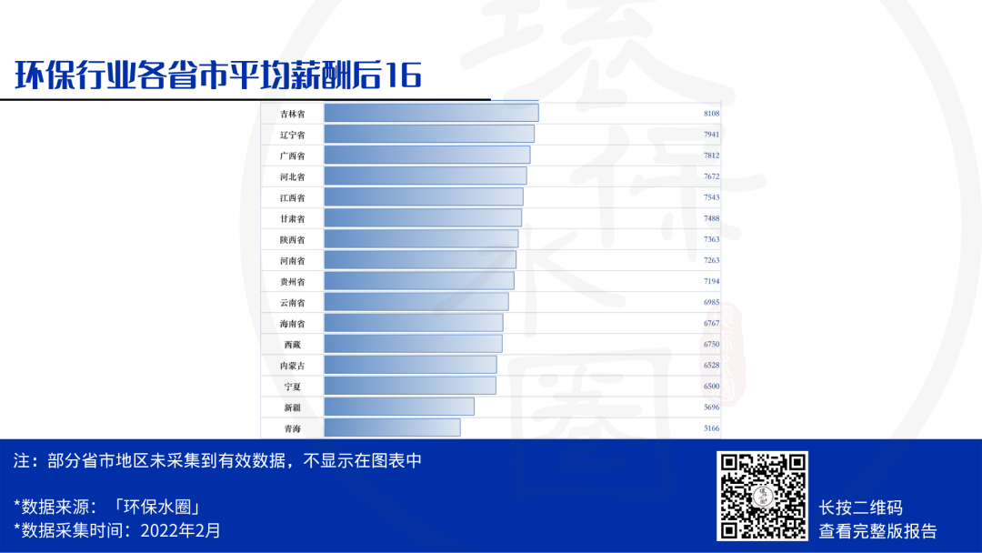 * 環(huán)保行業(yè)各省市平均薪酬(數(shù)據(jù)為稅前月薪)
