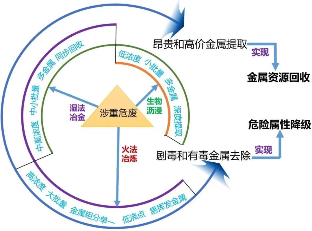 In recent years hazardous wastes (HWs) as highly harmful solid waste have been drawing increasing attentions due to their serious environmental pollution and severe threat to health. Because HWs are characterized by huge production, very wide range, numerous sources, and very complicated components and structure, a scientific classification and grading is necessary to both their refined management and precise treatment and the system construction and healthy development of HWs discipline. Among HWs, there is a fairly large category with toxic characteristics originated from the toxicity of heavy metals contained. The large class of HWs has long-term harm to both environment and health due to undegradability of the toxic heavy metals, whilst the big category also displays irreplaceable resource value owing to irreproducibility of the heavy metals. In the current work, the big category as an important and unique subdivision area of HWs was scientifically defined in the world for the first time, with clear intension and extension; metals/heavy metals was reclassified into five category, covering expensive metals, high-price metals, low-price metals, high toxic metals and non-toxic metals, and the feasible route for resource utilization of the HWs containing heavy metals was proposed; the applicability of pyrometallurgy, hydrometallurgy and bioleaching was fully analyzed in the extraction and recovery of metals from the HWs containing heavy metals, and two leading appeals and technical principle of resource utilization of the HWs containing heavy metals was also discussed.